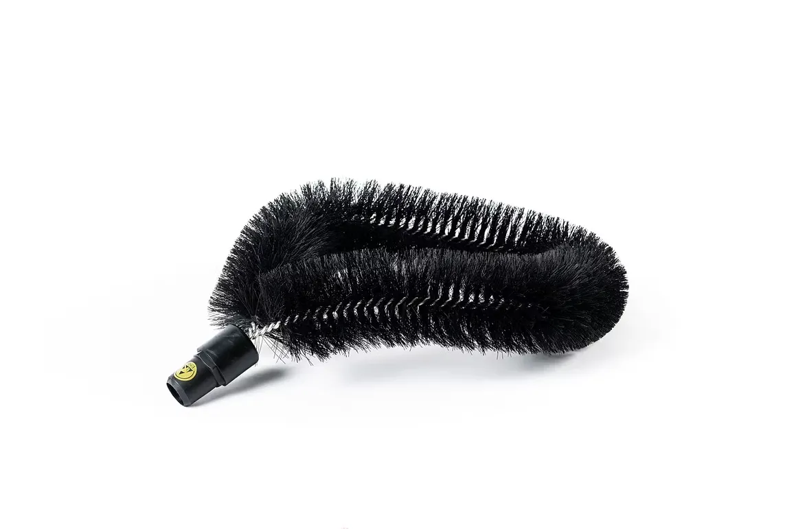 Cepillo ESD flexible (Ø50mm) para limpieza de tuberías curvas en plantas químicas. Varilla interna de acero inoxidable para mayor durabilidad.