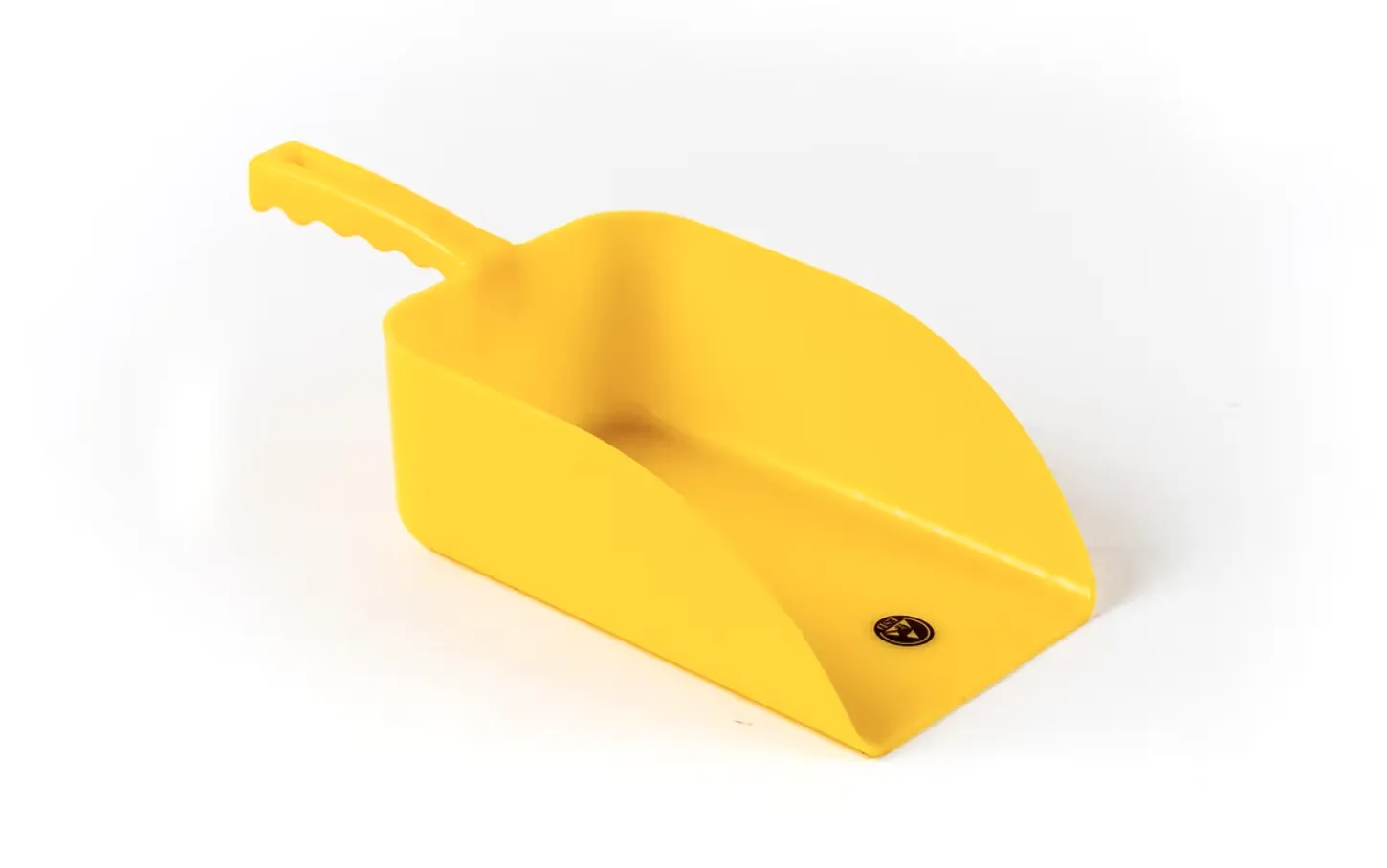 Pala grande conductora ESD para operaciones industriales alimentarias. Previene riesgos de descarga en áreas con polvo.